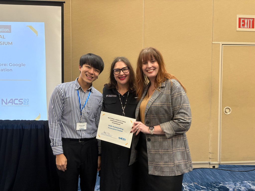 Agricultural education and communication post-doc, Cheng-Xian Yang, was awarded First Runner-up Outstanding Paper for his paper titled The Cost of Innovation: Exploring Americans’ Perspectives of AI-Assisted Food Traceability and the Food Traceability Final Rule. Other authors included Lauri M. Baker and Li-Yu Liao.